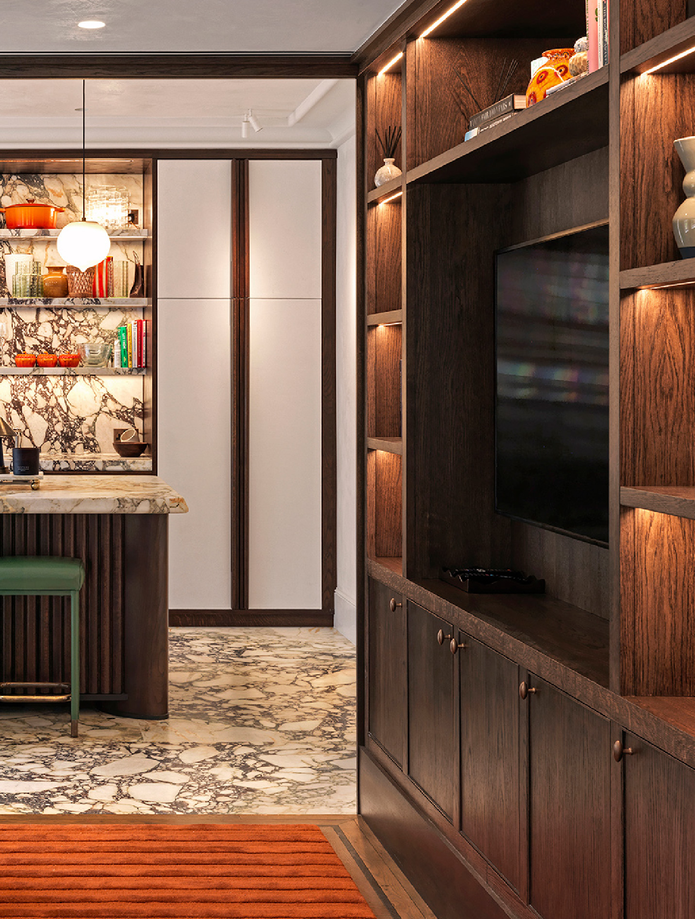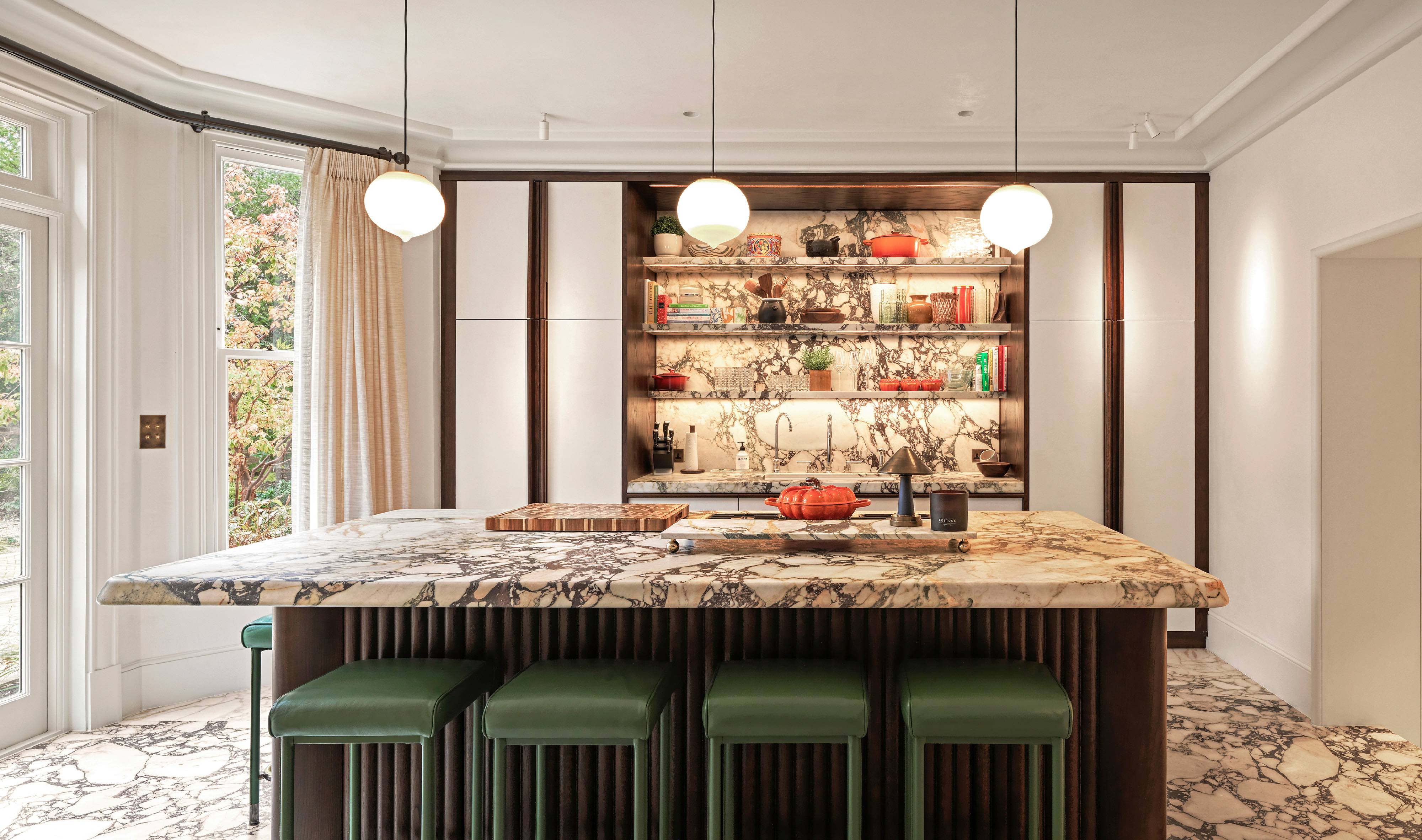 Sensitively refurbished and reconfigured grade II listed Georgian townhouse with new copper extension to the rear. We worked with TR Studio and BOSS to achieve a luxury family home with speciality imported bespoke finishes throughout, including book-matched stone, carved marble bath surrounds, intelligent controls and bespoke fitted joinery. The completed house blends a fusion of contemporary materials with traditional detailing and feels luxuriously comfortable to live in.